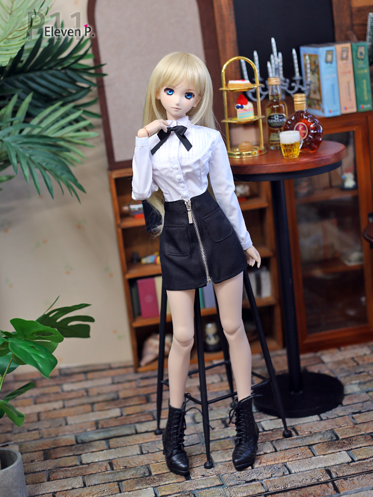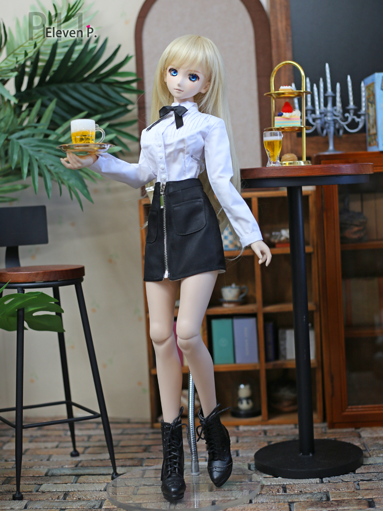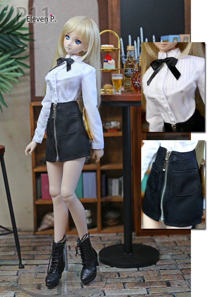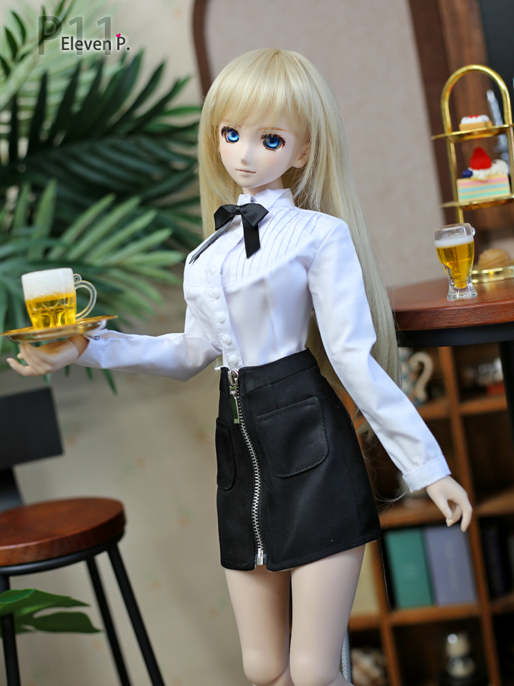 1/3,DD,SD 長袖シャツ 黒ミニスカート カフェ ウエイトレス セット服 ドルフィードリーム ドール服 オーダー
