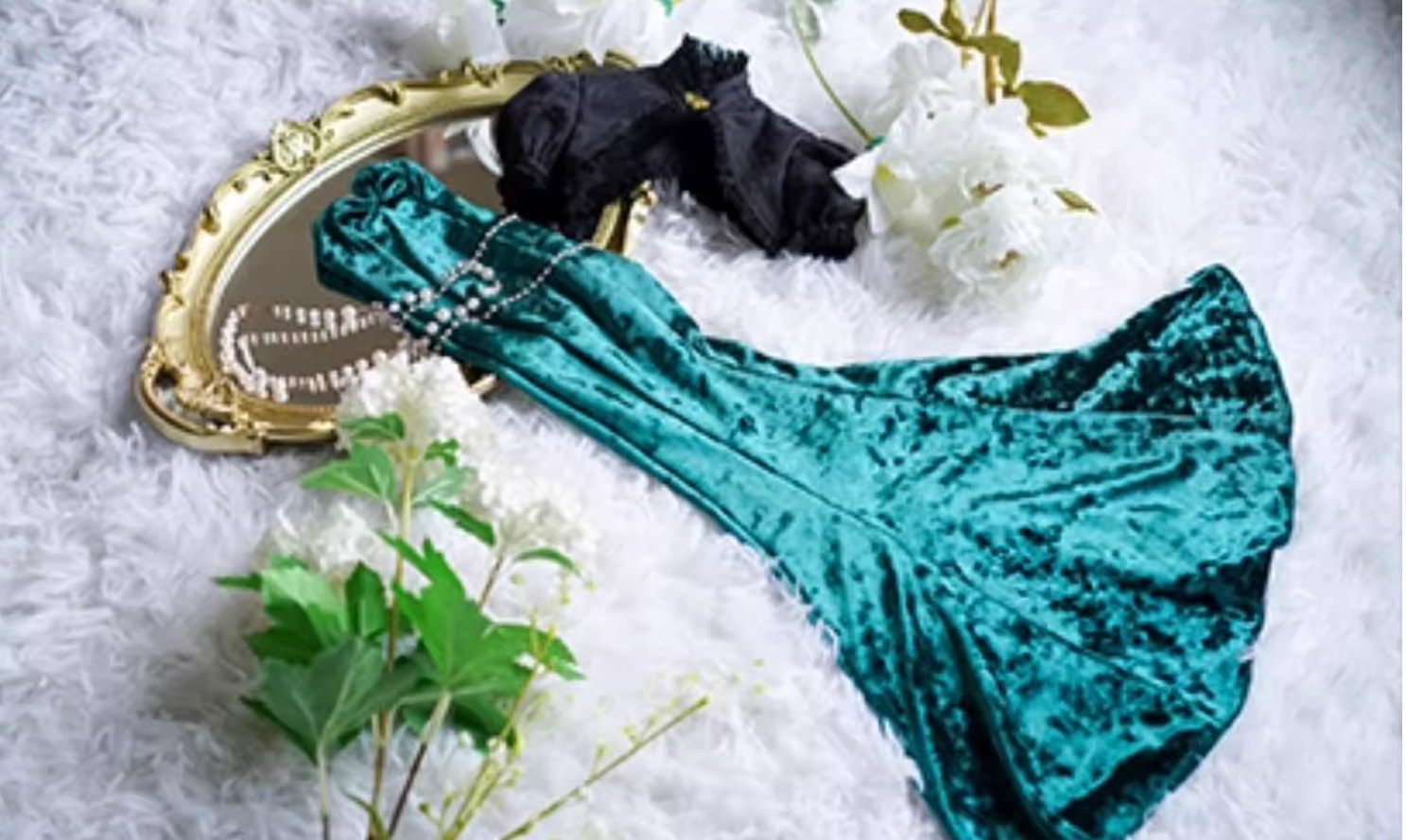 1/3,SD,DD マーメイドロングドレス アクセ付 ダークグリーン スーパードルフィー ドール服 オーダー