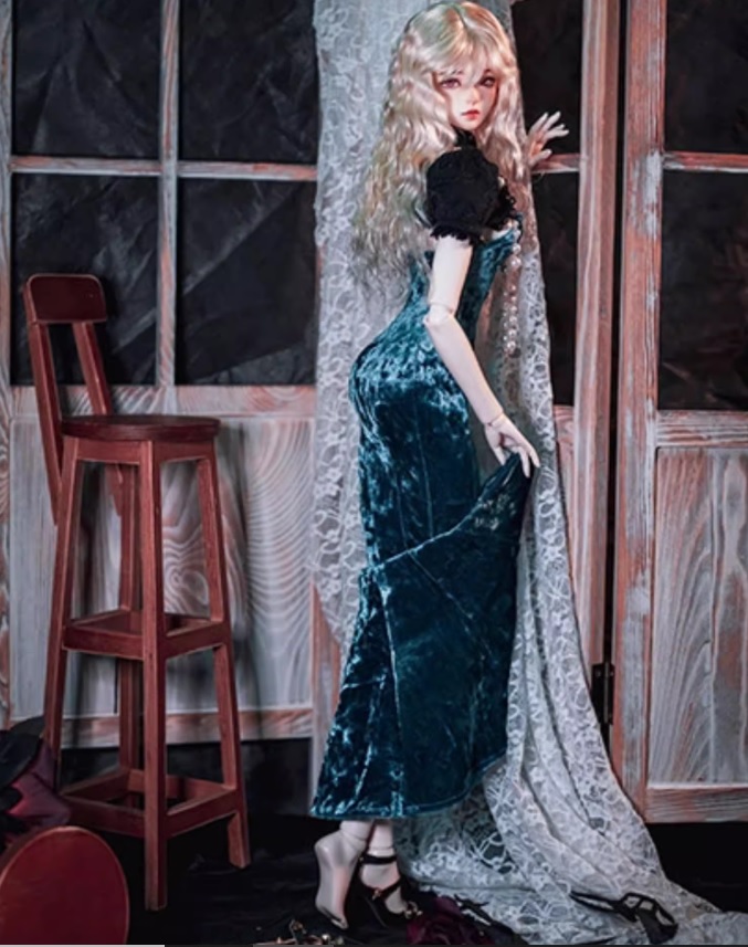 1/3,SD,DD マーメイドロングドレス アクセ付 青 スーパードルフィー ドール服 オーダー