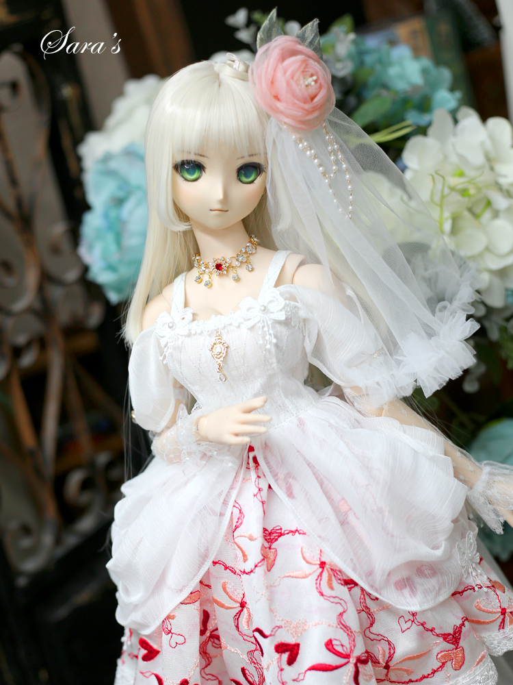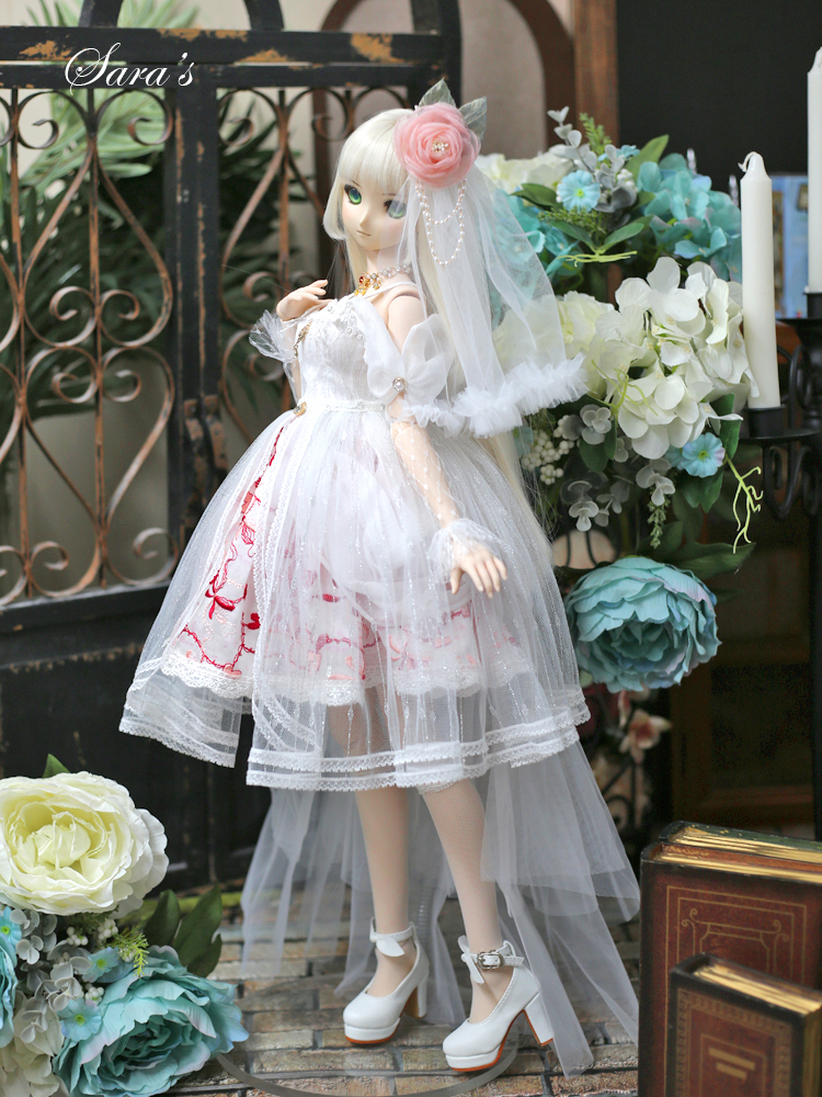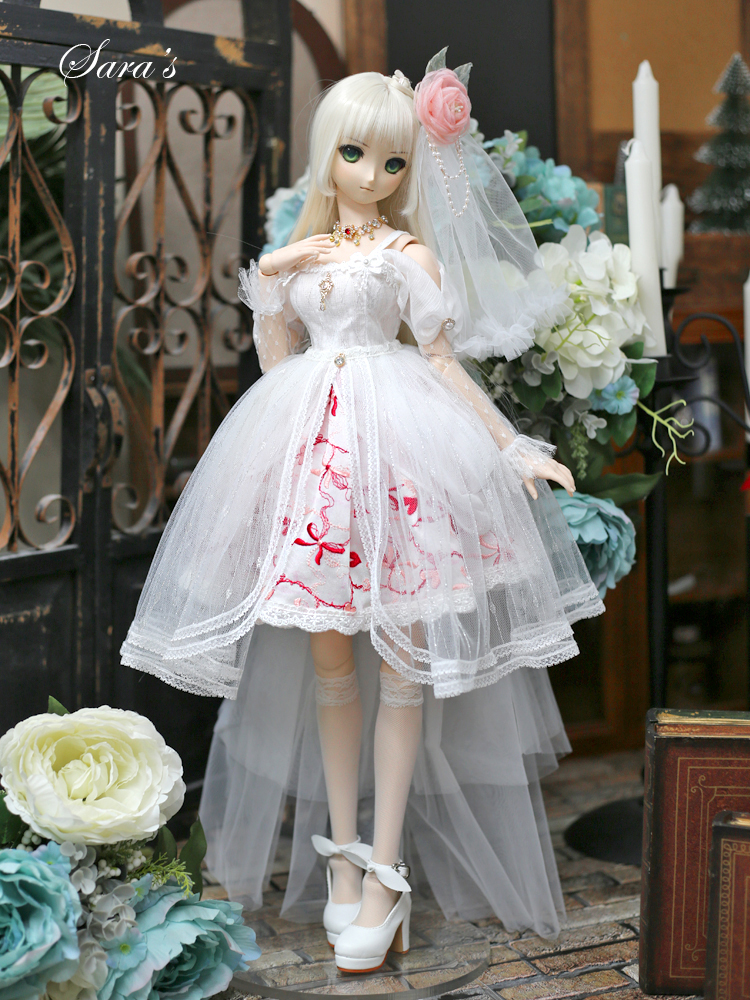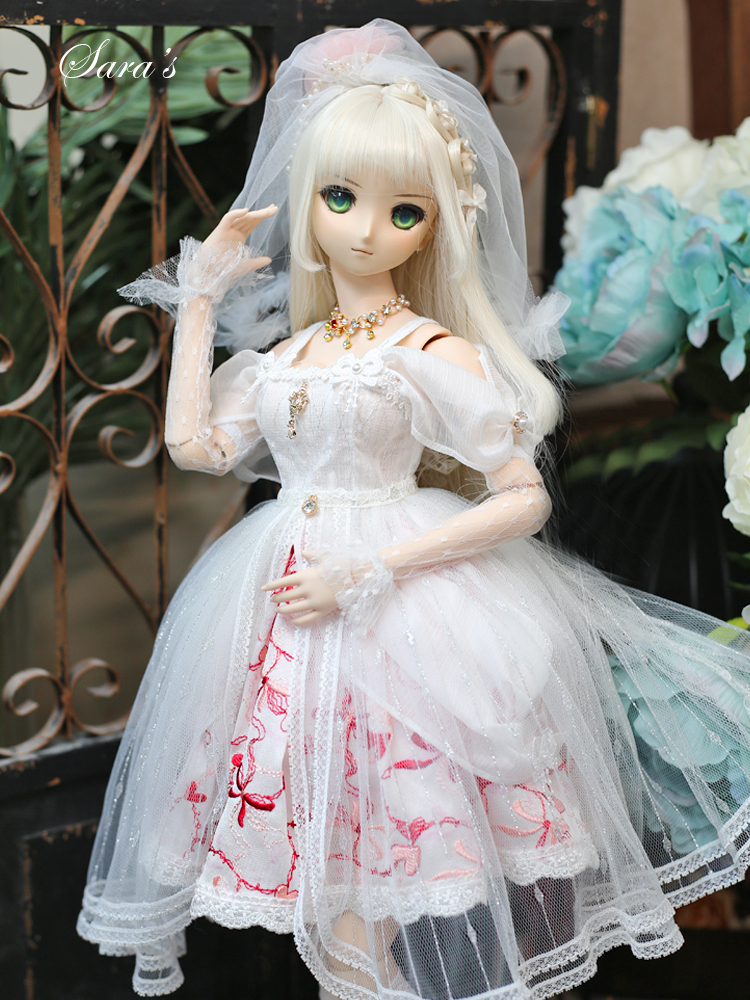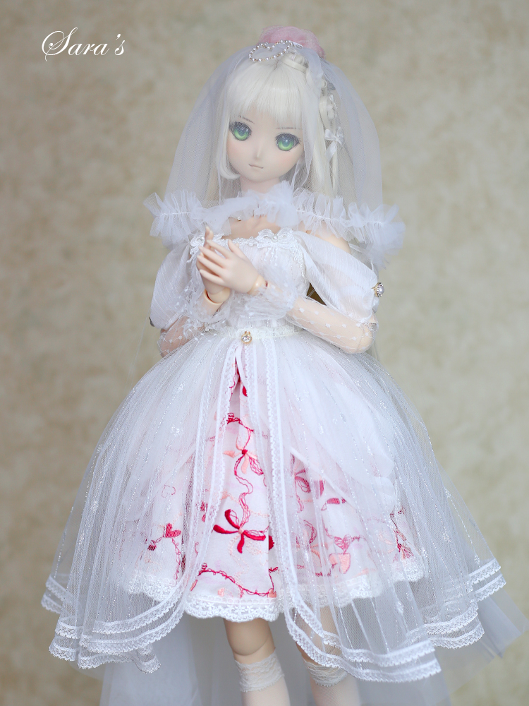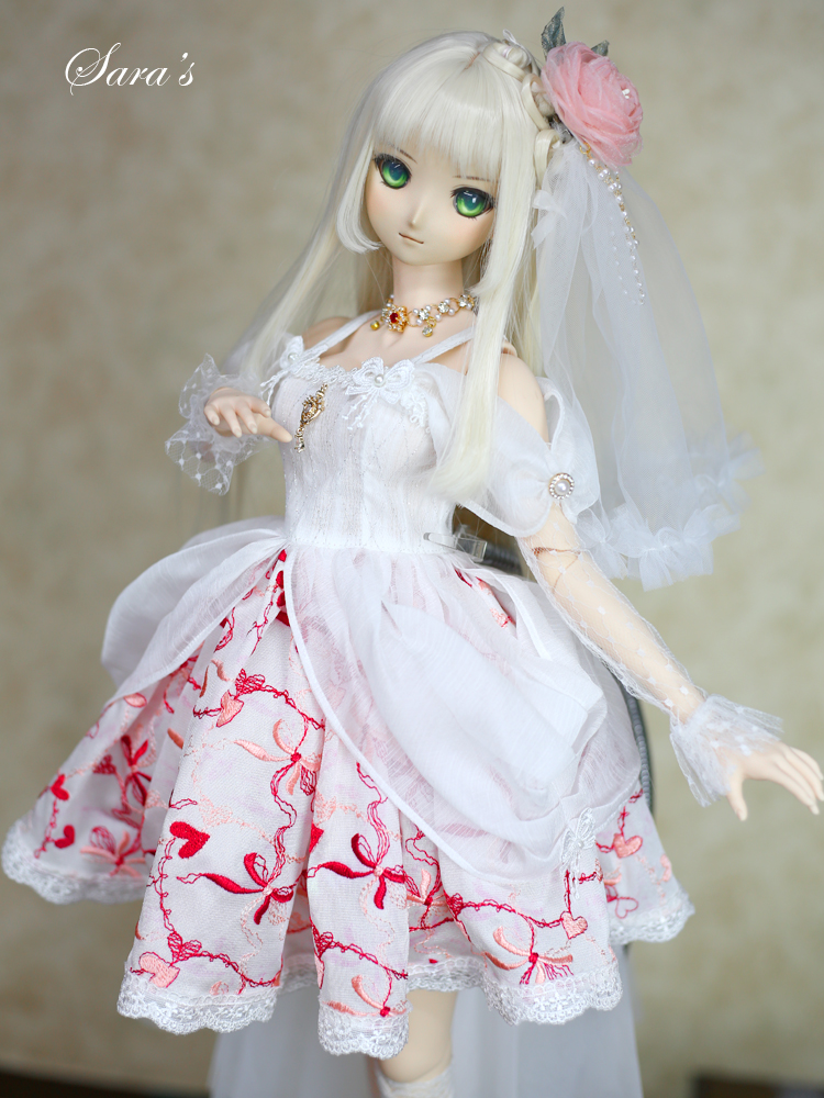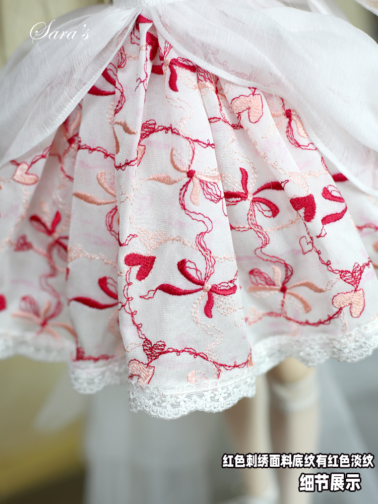 1/3,SD,DD オフショルダー レース ミニドレス セット服 赤刺繍 ドルフィードリーム 人形洋服 オーダー