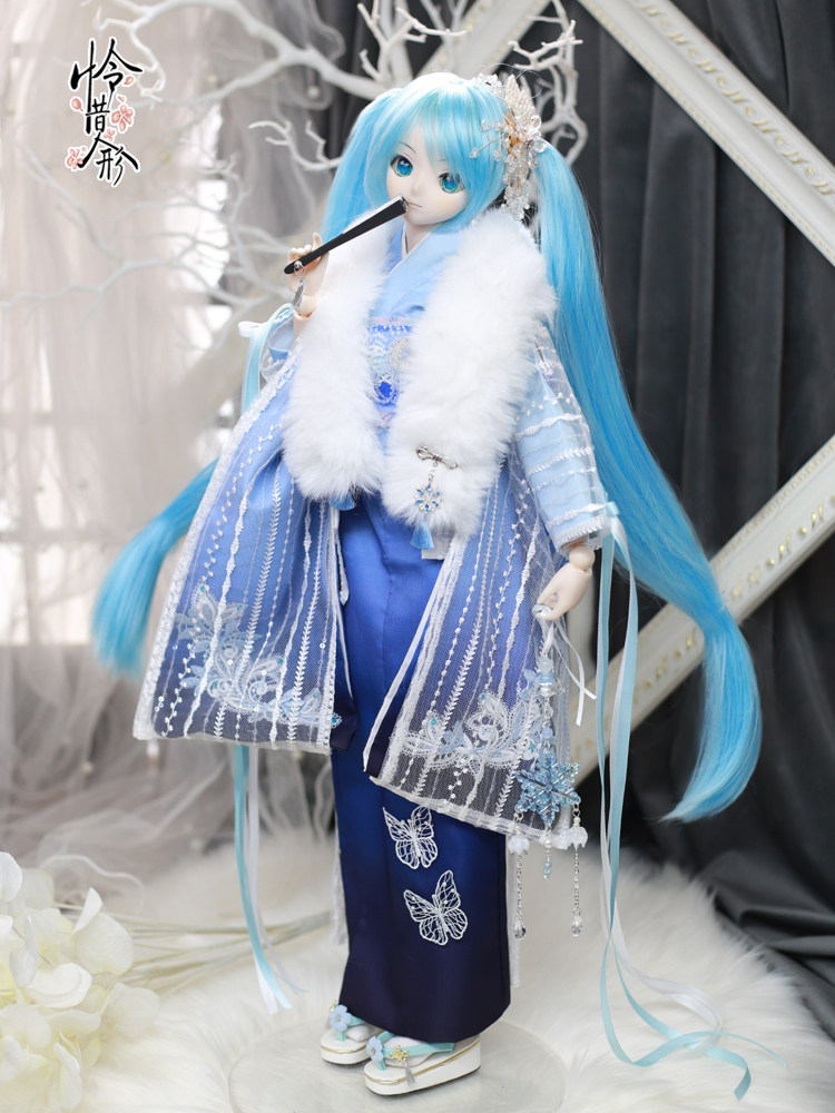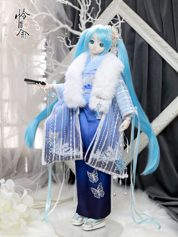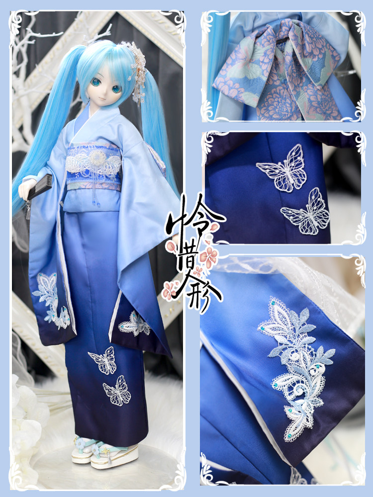 1/3,DD,SD 雪の華 青グラデーション 豪華 振袖 着物セット ドルフィードリーム 人形着物 オーダー
